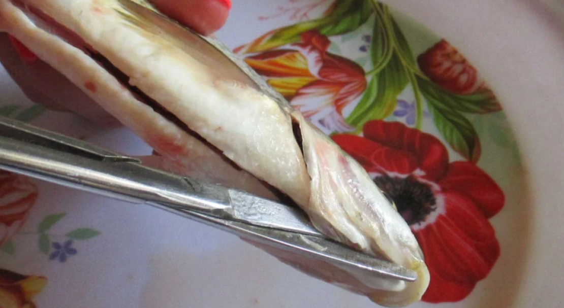 Столовый прибор просто переворачивают выпуклой стороной вверх, запускают кромку ложки под первый ряд чешуи и не спеша поднимают их все до самой головы. С обратной стороны проделывают такие же манипуляции.