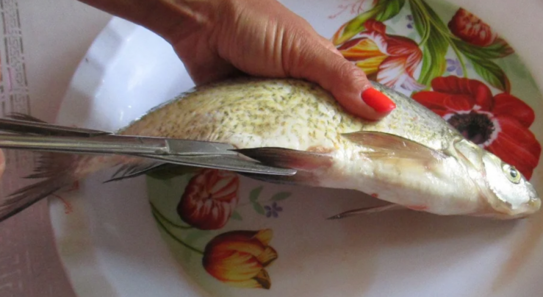 Перед тем, как приступить к удалению чешуи, отрежьте хвост и плавники леща. Это поможет сделать процесс очистки более удобным и гигиеничным.