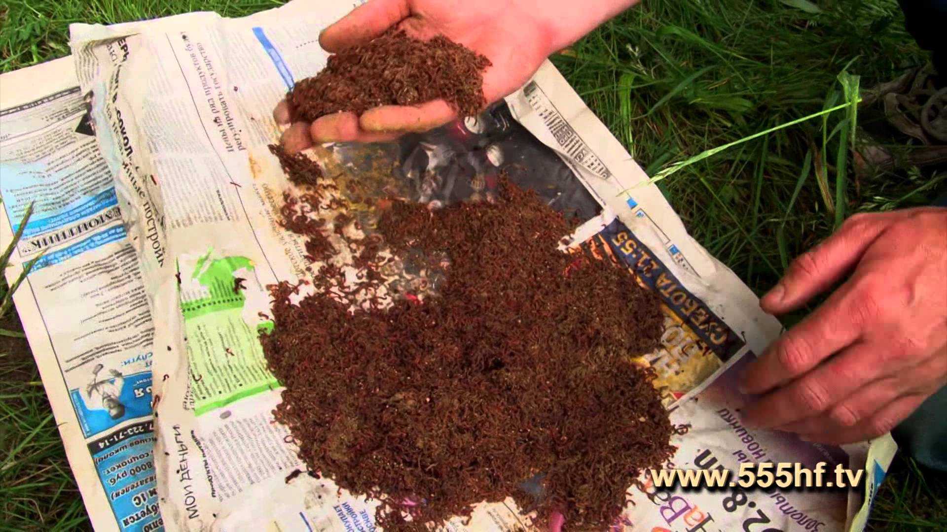Достаете мешок, вытягиваете его содержимое и выбираете мотыля из ветоши, поролона, старых мочалок.