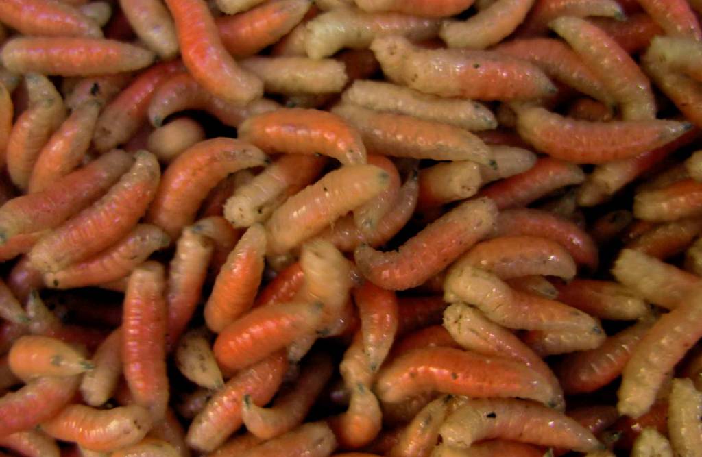 Напитавшись окрашенным кормом, опарыш приобретет нужный цвет.