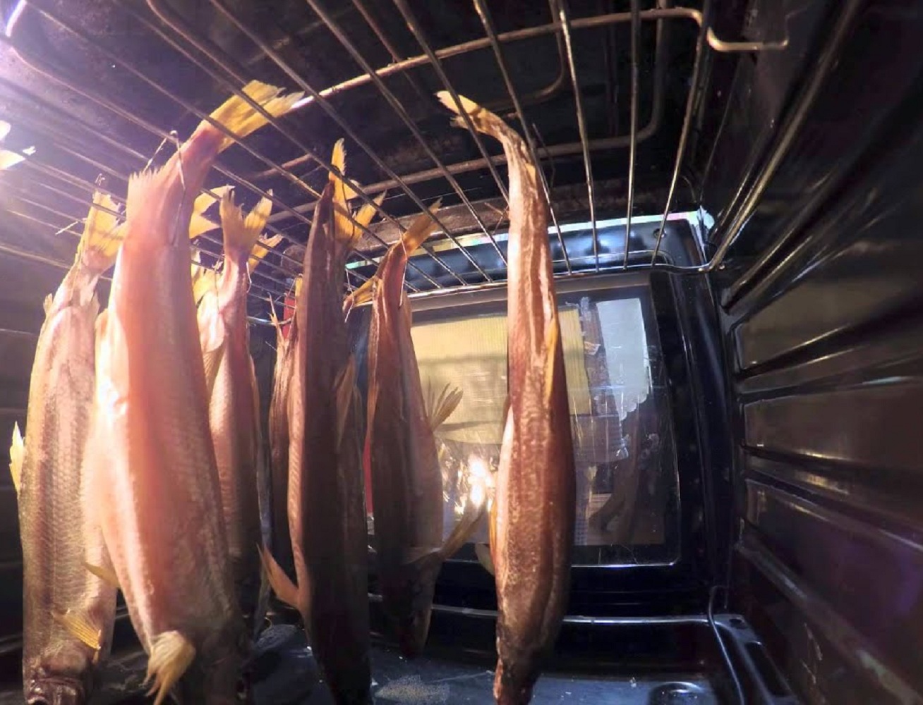 - Аналогично сухому посолу вывешиваем рыбу на просушку.