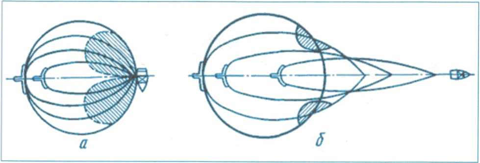 Рис. 6. Положение и форма урезов при выборке донного невода: а – с постановкой на якорь;