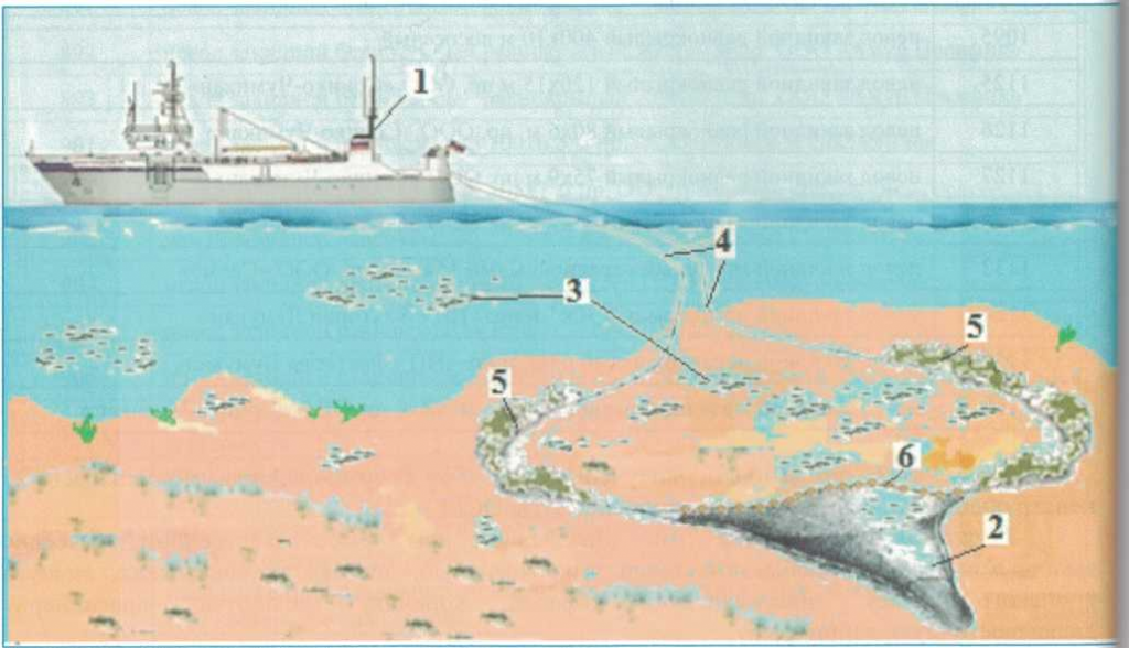 5 – мутьевые шлейфы от перемещения урезов; 6 – верхняя подбора снюрревода