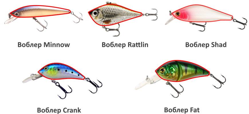От формы модели будет зависеть качество игры, особенность применения, предназначение, а также возможные техники ловли. Среди основных типов воблеров выделяют: