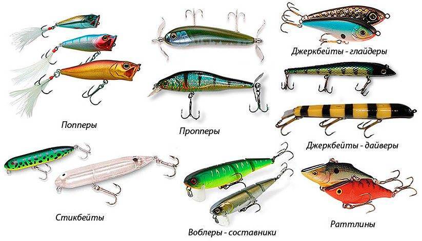 При широком ассортименте моделей этого вида поверхностных воблеров, все они отличаются тем, что абсолютно не цепляются крючками (или спрятанными в теле приманки, или вертикально поднятыми вверх).