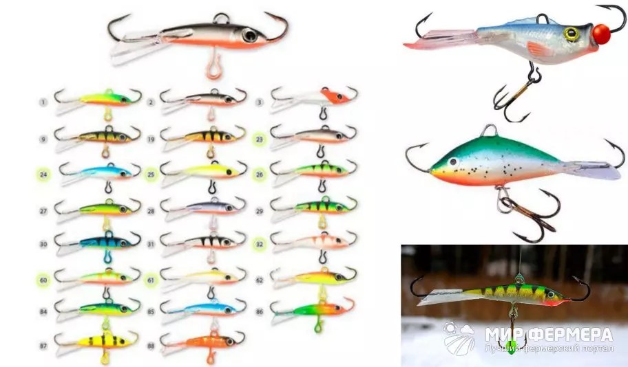 «Аква Проглот» (Aqua Proglot). При опускании в лунку, приманка идет вниз по вертикали и при натяжении лески приобретает горизонтальное положение. Еще она движет хвостом таким образом, что создаваемые колебания привлекают к себе хищника. Данная модель может сглаживать ошибки рыболова при проводке и отлично подходит для новичков. Отличается от других балансиров низкой ценой- около 100 рублей. Правда, они могут попасться некачественные, и лучше всего тщательно рассмотреть их в магазине.