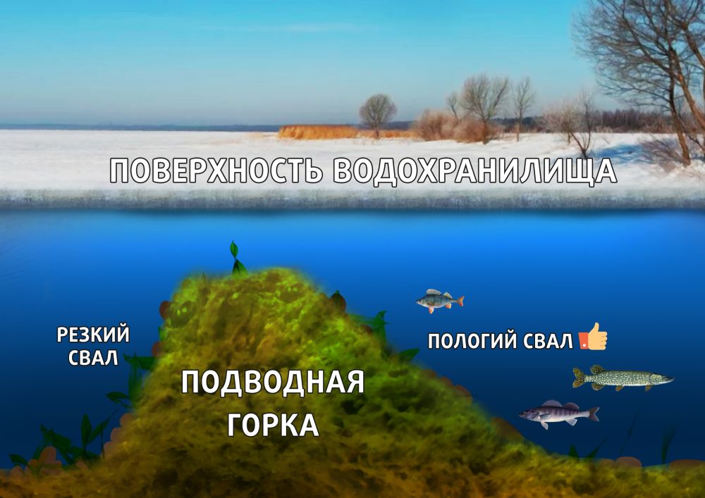 Обзор перспективных мест, где вероятность встречи со щукой при её ловле на зимние жерлицы довольно высока, хотел бы закончить подводными горками и различными банками. Такие аномалии в донном рельефе на водохранилищах как магнитом притягивают малька, особенно это актуально для середины зимы и второй её половины. За мальком следует окунь, которого здесь всегда превеликое множество.