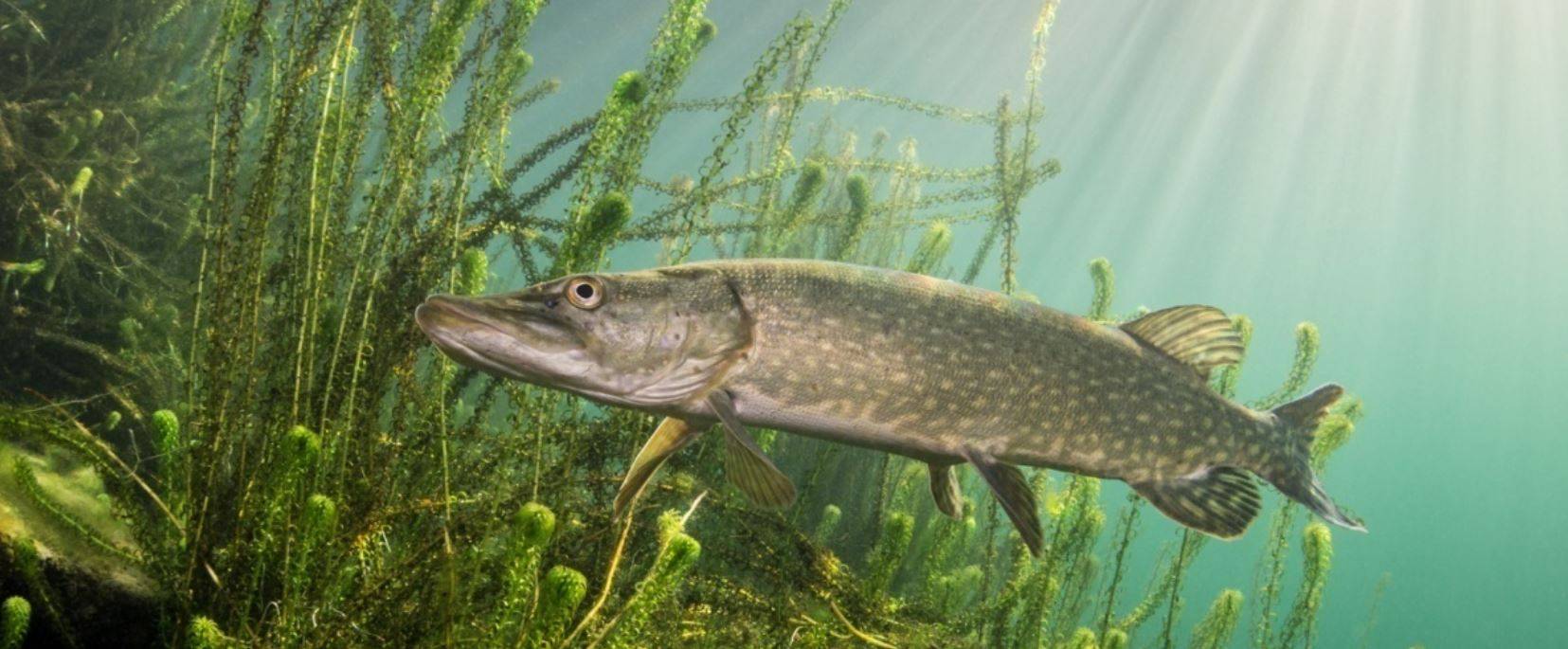 В дневное время щука прячется среди подводной растительности, под корягами, под высокими берегами или возле перекатов.