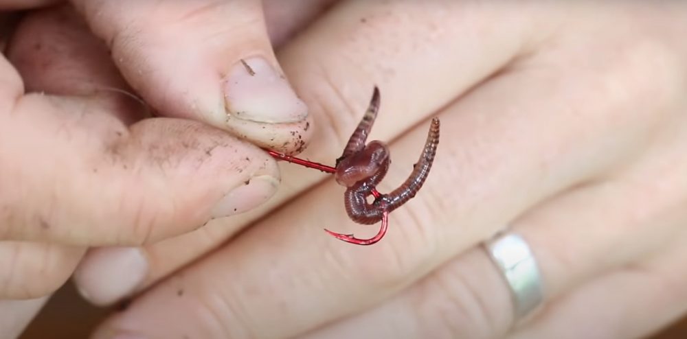 При ловле карпа лучше всего подойдут земляные черви. Чуть ниже головы наживка прокалывается крючком, а затем прокалывание делается в других местах. В остатке хвоста, размером 4 см, надежно прячется жало.