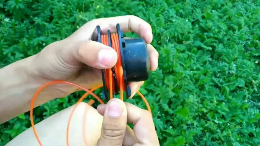 Намотка лесы на триммерную катушку с 2-мя дорожкамиИсточник ytimg.com