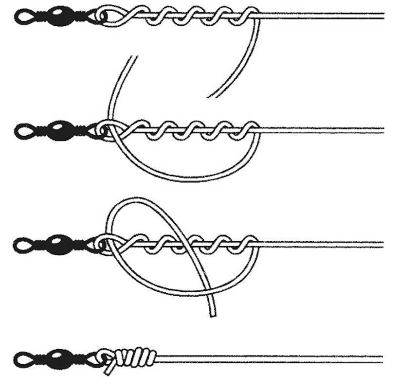Offshore Swivel-Knot — вяжется очень просто надо лишь несколько раз повернуть карабин вокруг себя, а затем затянуть края лески: