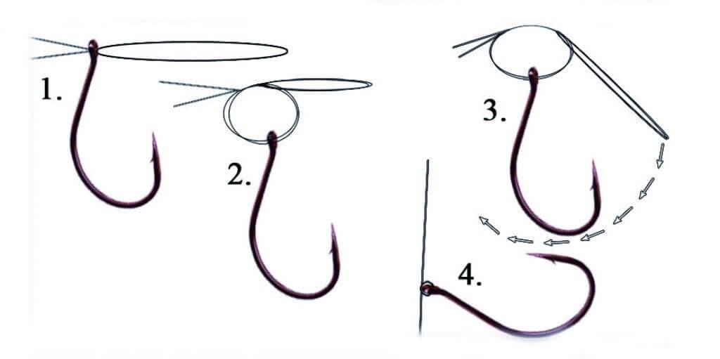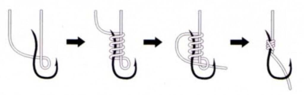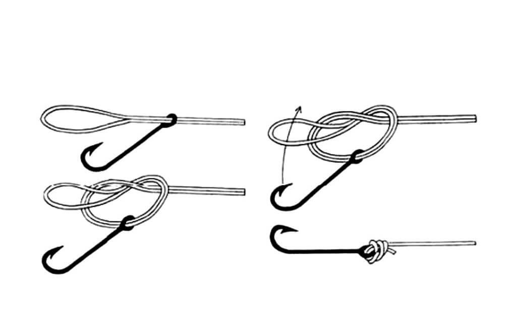 Этот очень популярный рыболовный узел является поистине универсальным. Им можно привязать как крючок с ушком, так и с лопаточкой, при этом его применяют и на монофиле и на плетенках. Его прочность достигает 95 процентов.