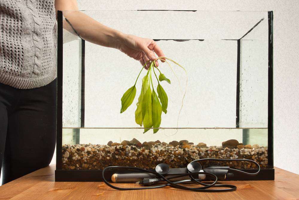 Аквариумные растения аккуратно вынимают из грунта, стараясь не повредить корневую систему, и переносят в отдельную емкость. Воду в нее наливают такую же, как и в отсадник с рыбками. Других гидробионтов (моллюсков, ракообразных) также пересаживают во временную емкость с подходящими параметрами среды.
