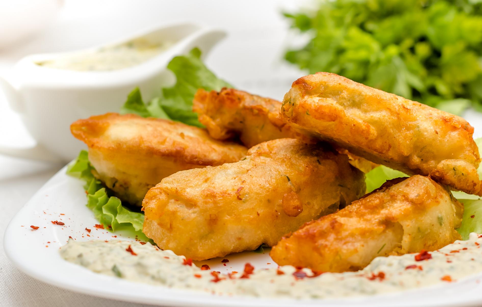 - Каждый рыбный кусочек обмакнуть в кляр и обжарить ломтики в нем на растительном масле до появления румяной корочки.