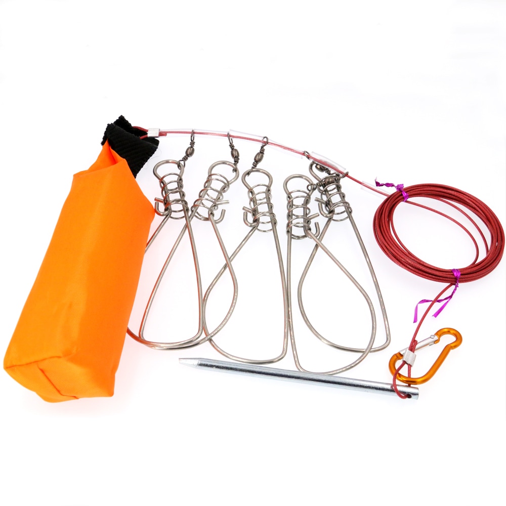 Существует два варианта крепления этого приспособления. Первый — это использование буя. Он находится на поверхности воды поблизости и к нему прикреплена вся пойманная рыба.