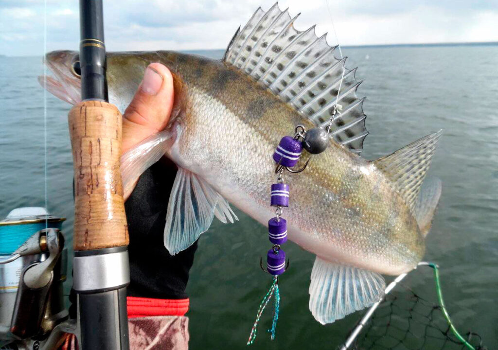Судак реагирует на мандулу вследствие того, что при проводке ее шарнирное тело изгибается, а хвостовой оперение призывно блестит под водой.