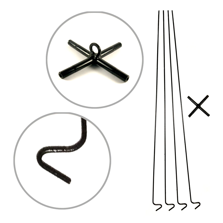 Удилище в виде рыболовного паука может иметь разборную конструкцию. Для ее изготовления нужны крестовина и пруты из металла. Длину элементов выбирают с учетом желаемых габаритов конструируемого подъемника. Если длина каждой стороны составит более одного метра, снасть по закону причисляется к браконьерским инструментам. В готовом изделии стойки могут выниматься из крестовины либо сами разбираться, повышая компактность.