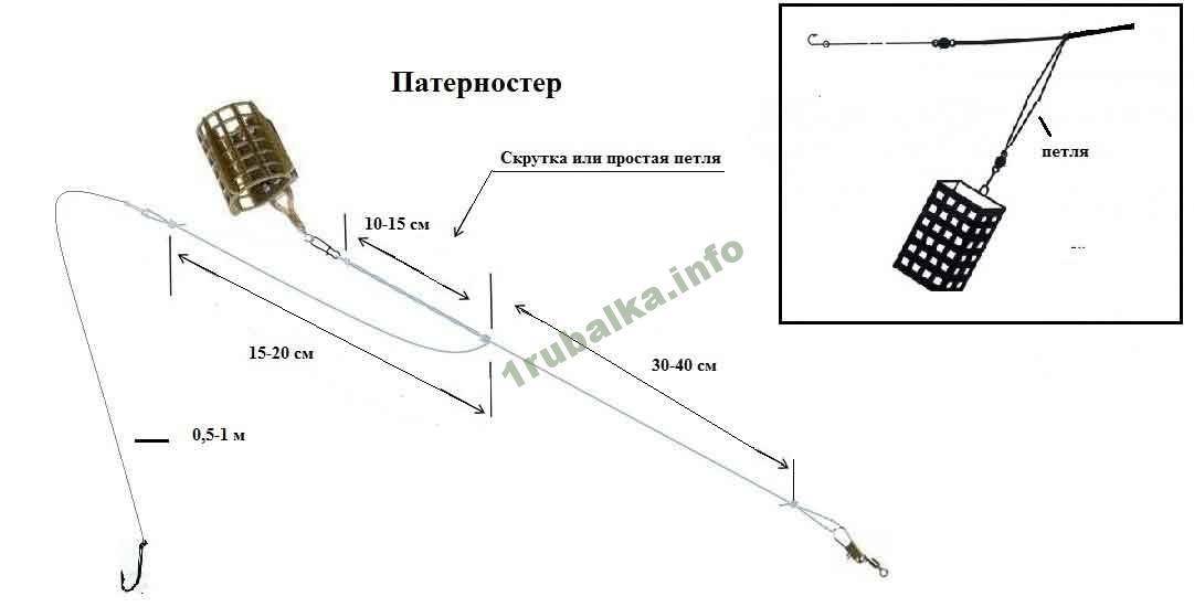 Этот монтаж называют еще петлей Гарднера, в честь английского рыболова, который популяризировал эту оснастку. Простота – главное достоинство патерностера. Делается такой монтаж прямо на основном шнуре (леске) или на шок лидере для фидера.