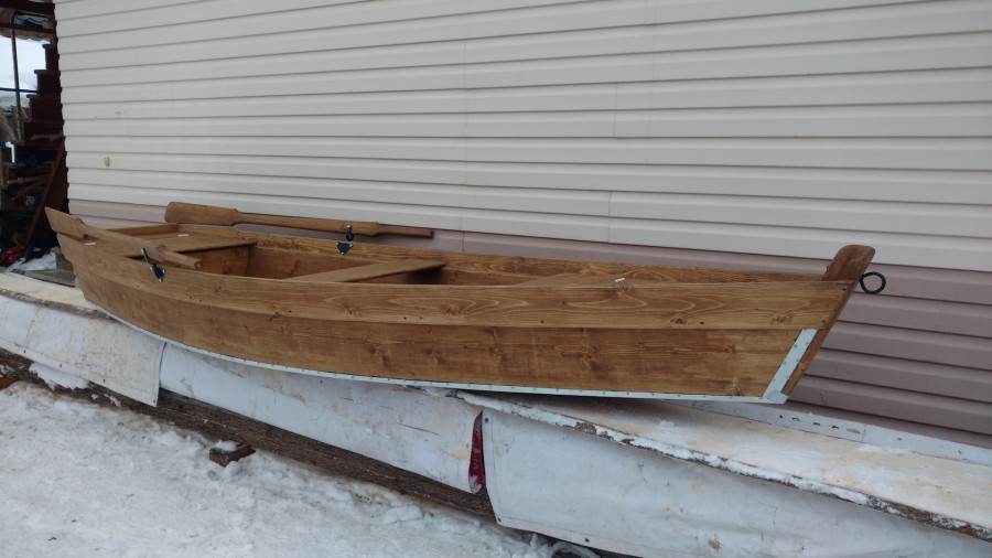После окончания сборки, работаешь рубанком, где надо скругляешь, выравниваешь, проходя весь баркас, выпиливаешь красиво шпангоуты. После наведения красоты конопатим, местами добавляем гвоздей, прикручиваем уключины, смолим дно, прибиваем на дно нащельники, смолим их, далее покраска. Также делаем сидухи кому как удобно красим и их. Весла у нас переходящие, лодки меняем, а весла прежние. Уключины на всех наших лодках одинаковые, чтоб без заморочек.