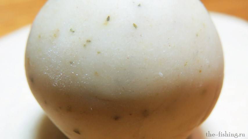 Готовность наживки проверяют скатыванием шарика из небольшого количества теста. Если шарик не липнет к рукам, хорошо держит форму, а сама масса тянется, значит, тесто готово и его можно снимать с плиты. После этого его еще раз вымешивают, остужают и заворачивают в пакет или пищевую пленку. К такой приманке подойдут примеси из масла аниса, мяты, валерианы, но капать его нужно непосредственно перед насаживанием шарика на крючок.
