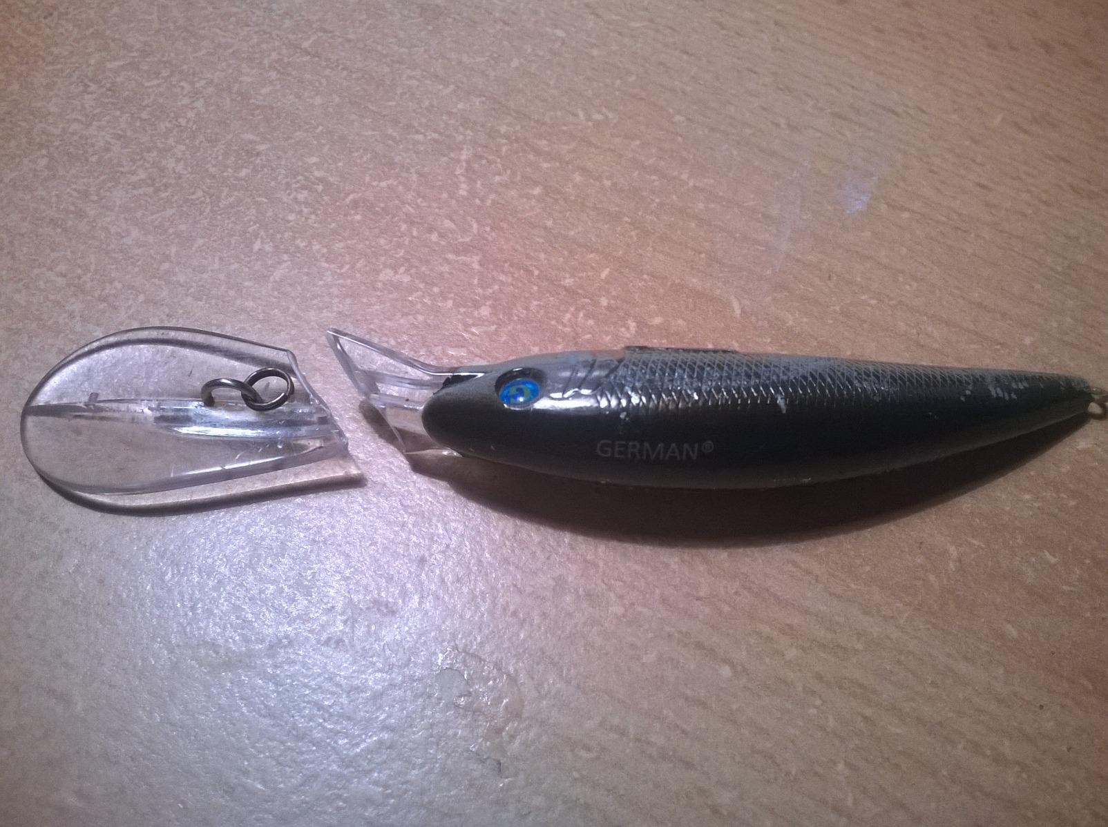 И вот воблер который делал в статье уже готов к эксплуатации.Лопатку не случайно сделал из стеклотекстолита-рыбачу в основном на камнях и бывает ломаются лопатки-то щук начинает так брыкаться пока вытаскиваешь ее на камни,что лопатки отлетают,то промажешь в темноте и вместо воды-на кромку камней со всего маху .Пластик не железо-от сильного удара отламывается.Этого недостатка лишены лопатки из стеклотекстолита-можно как угодно лопатить ими по камням-сломать не получится.