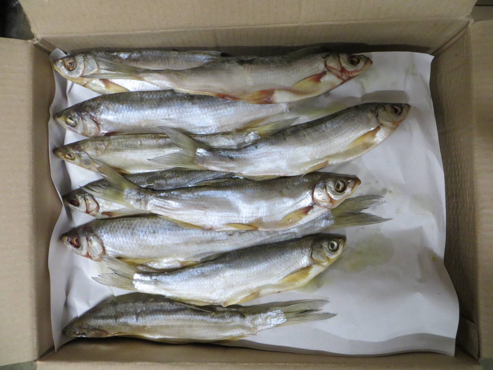При нанизывании на шпагат количество тушек – не больше 10, длина шпагата – около метра. Рыбу большого размера связывают бечевкой длиною полметра по две штуки, проделав отверстия около хвоста. Потрошеные тушки и куски крупной рыбы обвязывают бечевкой.