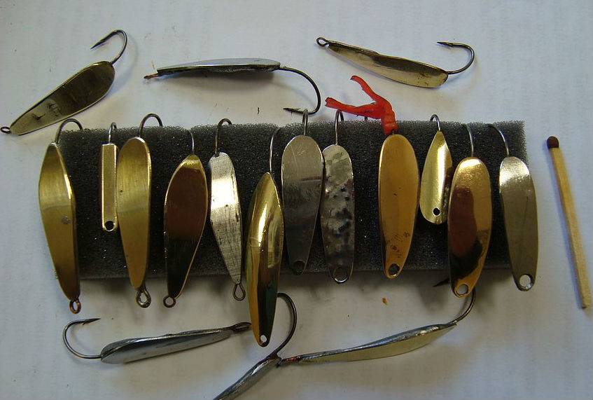 Целесообразно завести специальную коробочку, куда поместить все используемые блесны разного типа (всего 15–20 шт.). Эффективность работы можно оценить лишь в реальных условиях, непосредственно на водоёме. Например, блесна с вольфрамовым грузом иногда плохо заводится. К тому же идёт она почти по дну, очень близко к нему. Значит, вам придётся её часто подёргивать.
