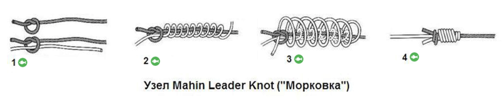 Узел Морковка, не только хорошо держится при сильных нагрузках, но и свободно проходит через кольца фидера.
