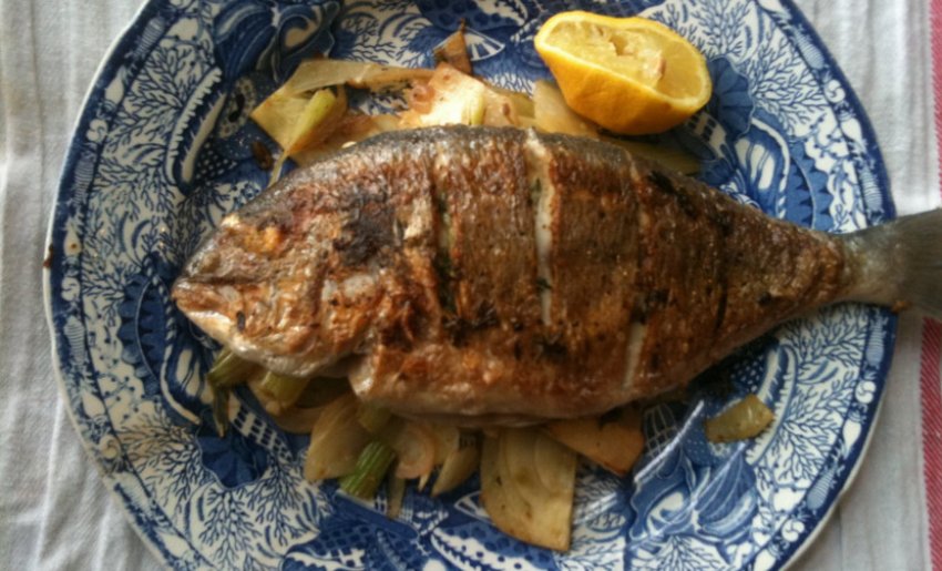 - Перемешать и натереть рыбу этой смесью. Если тушка целая, кусочки лимона, лука и травы можно вложить в брюшко рыбы.