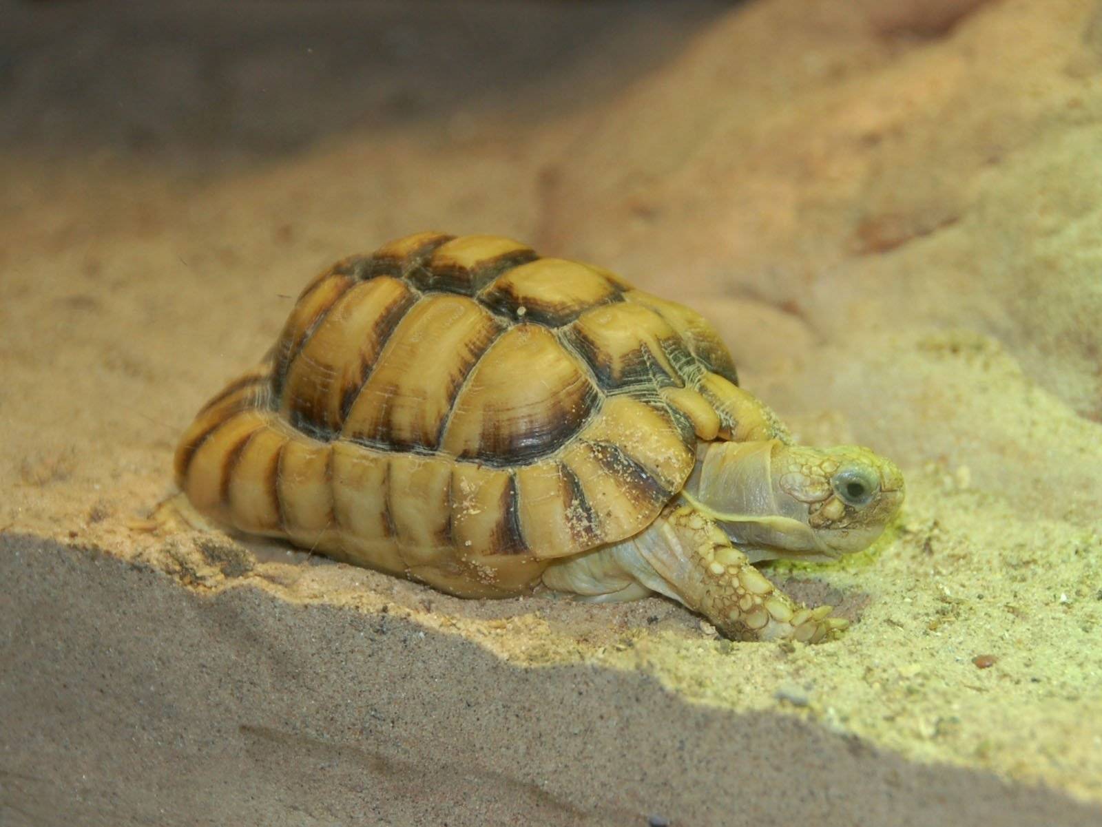 Эта популярнейшая сухопутная черепашка страшно не любит ограниченные пространства. Именно поэтому в неволе она капризна и может даже погибнуть.