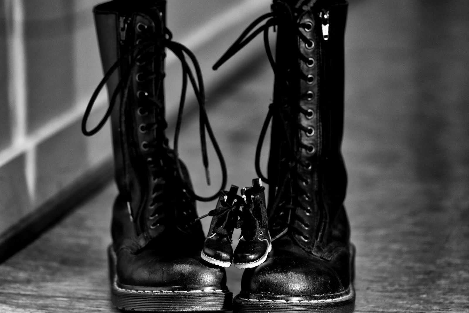 Выбор ботинок для мужчин, помогающий создавать различные образы, также широк. Лук каждого дня – черная кожаная повседневная пара и косуха, серая футболка-поло, синие вареные джинсы.