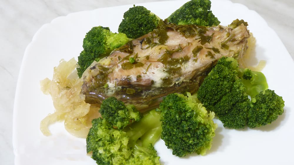 Готовое мясо становится упругим, будто пружинистым. При прокалывании вилкой на поверхности появляется белый сок, а мясо легко отделяется от кости. Прозрачную мякоть стоит подержать еще немного. Только после того как рыба подрумянится, ее можно солить и перчить.