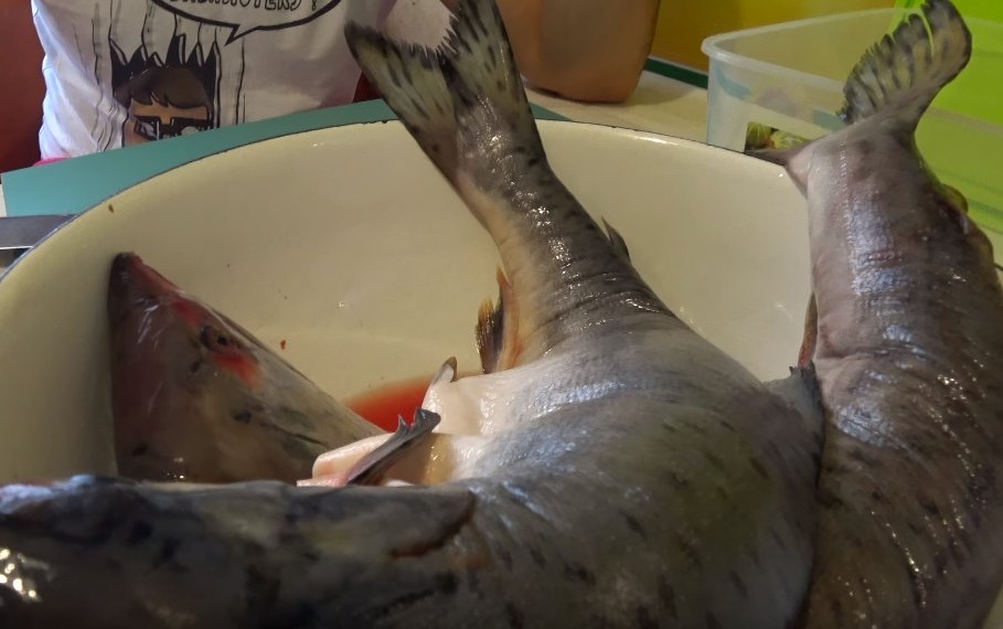 - Отрезаем голову, плавники, достаём внутренности, хорошо промываем изнутри.