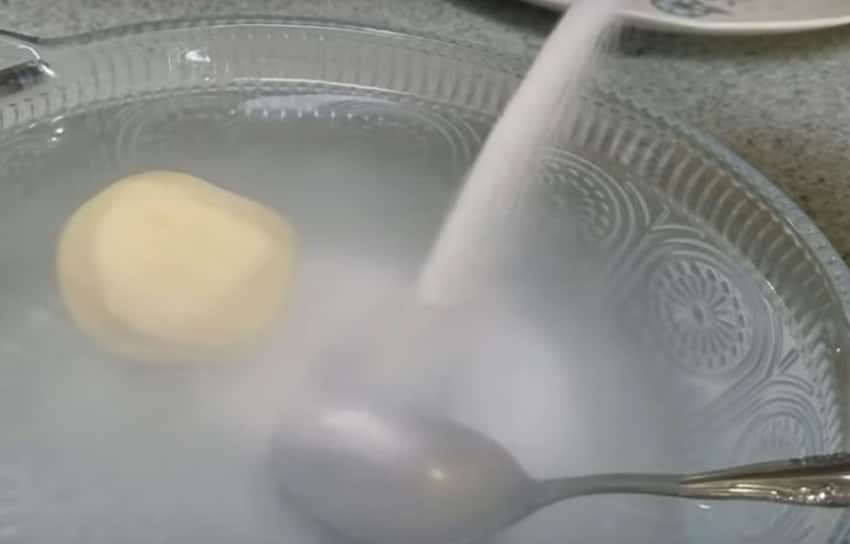- Постепенно всыпать соль, пока картофелина не поднимется вверх.