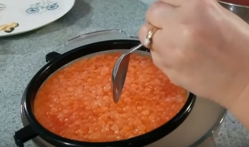 При этом очень важно не повредить ножом пленочную оболочку, защищающую икринки. Если это произойдет, икра может приобрести горьковатый вкус