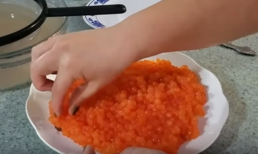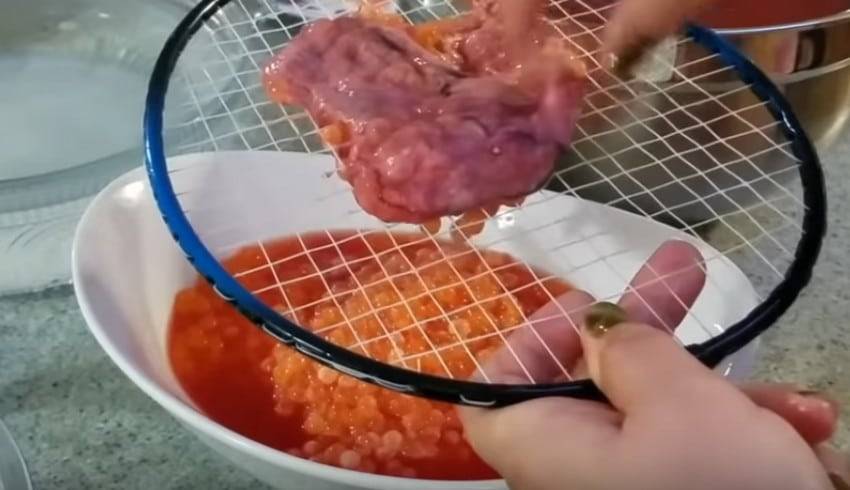 Каким бы способом вы ни отделяли икринки от пленки, их после этого нужно тщательно промыть. Делают это обычно трижды.