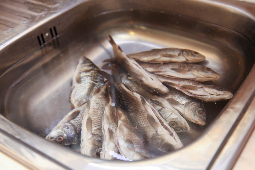 Если они по-прежнему остаются на дне тазика, значит, необходимо вымочить карпа, чтобы в результате не получить чрезмерно соленый продукт. В процессе вымачивания воду понадобится менять несколько раз.
