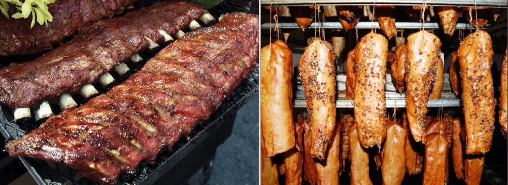 При горячем способе продукт готов к употреблению уже через 4 часа, так как обрабатывается дымом, температура которого составляет 90-120°С. Как результат – хорошо приготовленное мясо, мягкое и нежное, как будто проваренное.