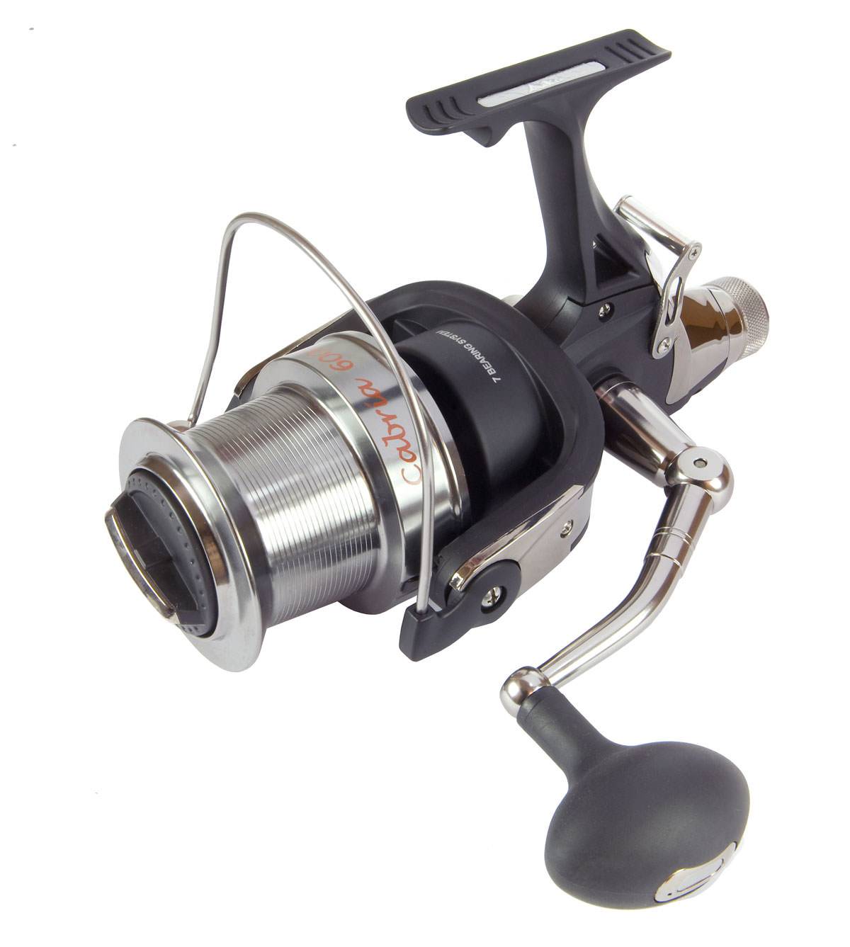 Внешне такая катушка отличается от обычной тем, что рядом с ручкой ее вращения размещена специальная скоба. При отведенной ручке механизм находится в рабочем положении, с освобожденной шпулей. Таким образом, если в этот момент сильная рыба дернет за леску, не застопоренная шпуля раскрутится, просто приспустив рыбу как собаку на более длинный поводок.