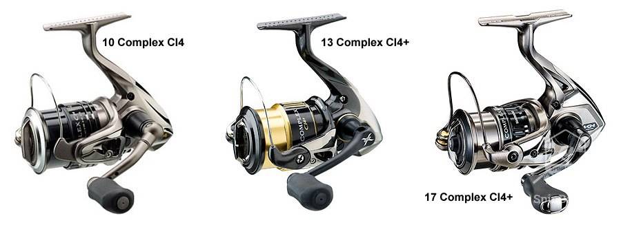 Потом через три года появляется 13 COMPLEX CI4+, отличающийся только тем, что при изготовлении корпуса был применён на то время самый инновационный материал CI4+, ещё катушка приобрела новый цвет, теперь она выполнена в чёрных тонах, изменили форму ручки, а концепция осталась такой же, хотя ротор доработали, он стал немного легче, дужка лесоукладывателя была размещена по классическому типу.