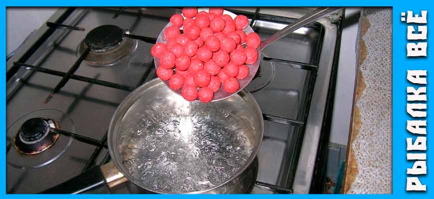 - На плиту ставится кастрюля с водой. Жидкость доводится до кипения. Бойлы опускаются как пельмени в воду. После повторного закипания и всплытия вылавливаются, охлаждаются, отправляются сушиться в темное место.