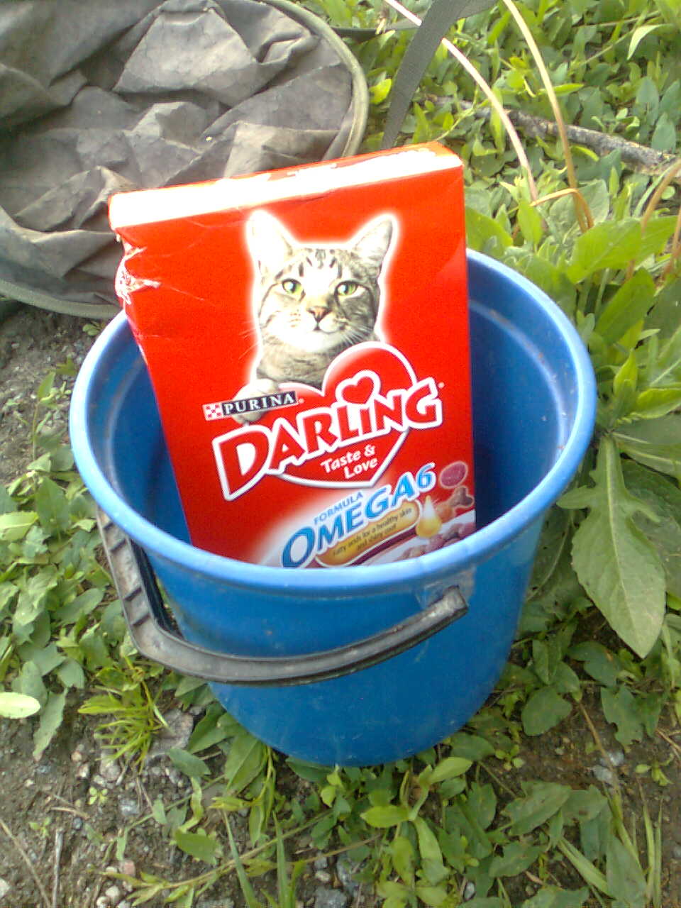 Заголовок этого поста вовсе не ошибка! Наконец я попробовал использовать котячий корм в качестве прикормки. И что Вы думаете? Результат есть! Еще и какой. С 14 на 15 мая я и мой новый товарищ выбрались на рыбалку в Ракитное. Забронировали сектор №13 – чертовое число, могло и не клевать . Рыба в Ракитном не большая. Трофейных карпов мало, по этому, я решил сделать ставку на тузиков до 3 кг. и ловлю на один фидер с оснасткой «патерностер». По пути на место рыболовства мы заехали в знаменитый круглосуточный магазинчик на ст. м. Славутич. Я прикупил «Фишдрима» красного и опарышей. Товарищ решил взять «красного» и даже мастырку! К сожалению ни то, ни другое не работало. По приезду на водоем мы наблюдали за турниром по ловле хищной рыбы памяти Ярослава Яковенко, слушали рассказы охранника о пойманном им соме на 20 кг! Получили информацию о временном бесклевии на водоеме, и пошли, под мелкий дождик, раскладывать снасти и накрывать «поляну». Было около 7 вечера. Я начал замешивать прикормку Состав прикормки для Рокитнянского карпа был такой – «фишдрим лещ», красный «фишдрим», кукурузка, горох, добавка Х (ну должны же быть хоть какие-то не раскрытые вопросы – все как у настоящего рыболова), конопля и конечно же…… /барабанная дробь/ …. Котячий мясной корм Darling (25% от общей массы прикормки)! До начала замешивания его нужно залить кипятком (пригоднился термос :))… он разбухнет… Я специально не дал ему полностью превратиться в однородную массу. Оставил мелкие частицы, которые отлипают от прикормки и всплывают вверх, тем самым привлекая рыбу. Теперь о дистанции ловли в Ракитном. Если снасть не позволяет сделать заброс под островки, которые там есть, или под противоположный берег – кидайте как можно ближе к себе. Я ловил на дистанции 30 метров. По моим наблюдениям и по показанию маркера, примерно на такой дистанции находиться основной свал. Конечно, в каждом секторе это индивидуально – лучше сразу промаркерить дно и найти бровку. Однако, если маркера нет – 30 метров на глаз и вперед! Первая поклевка поступила практически сразу.