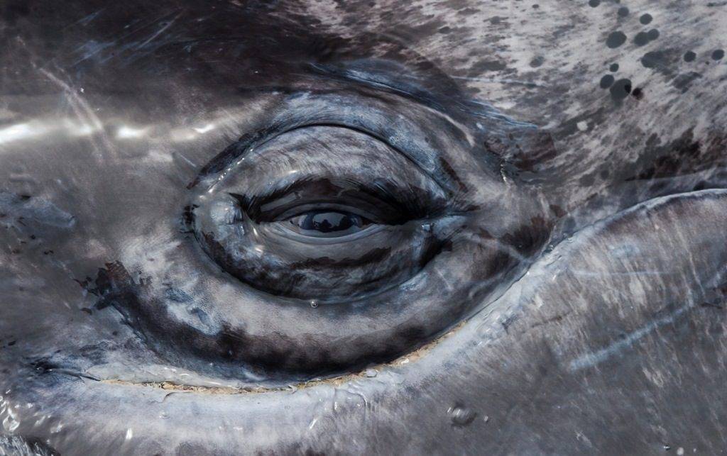 Глаза китов по отношению к телу имеют совсем небольшие размеры: у крупных видов глаз весит до 1 кг, причем размер глаза кита может составлять 10-17 см в диаметре. У маленьких китов размер глаза соответствует глазу собаки.