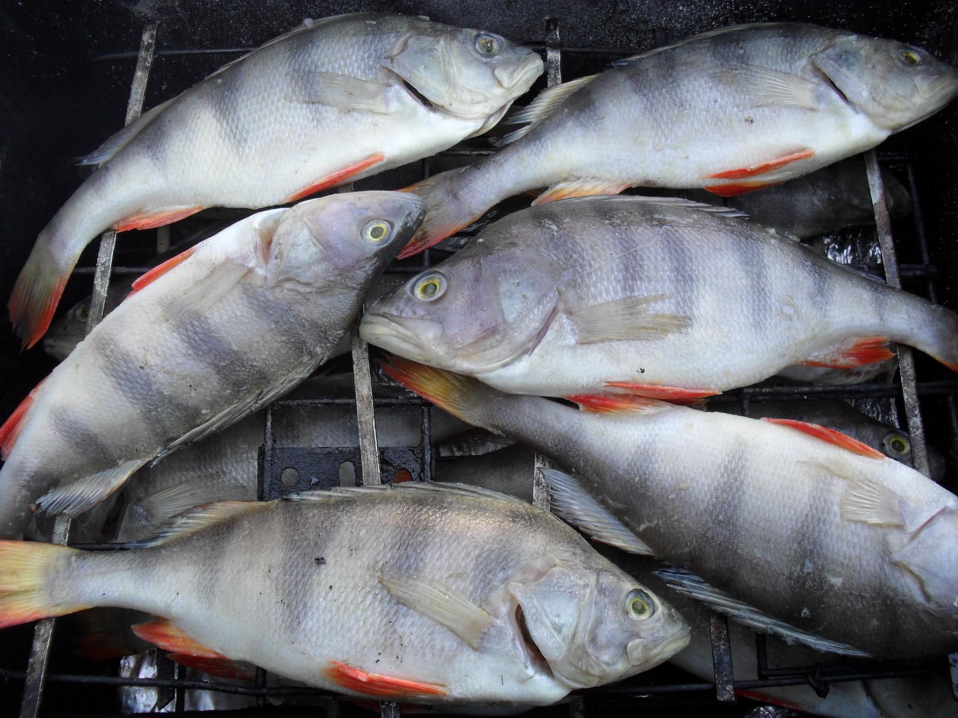Окунь горячего копчения готовится аналогично, только общее время следует уменьшить. Для маленьких окуньков достаточно будет 20-25 минут. Этого времени хватит, чтобы горячий дым через «броню» рыбы проник в тушку и пропитал ее. Крупный окунь не будет сухим, а кости будут легко отделяться от мягкого мяса через 30-35 минут.