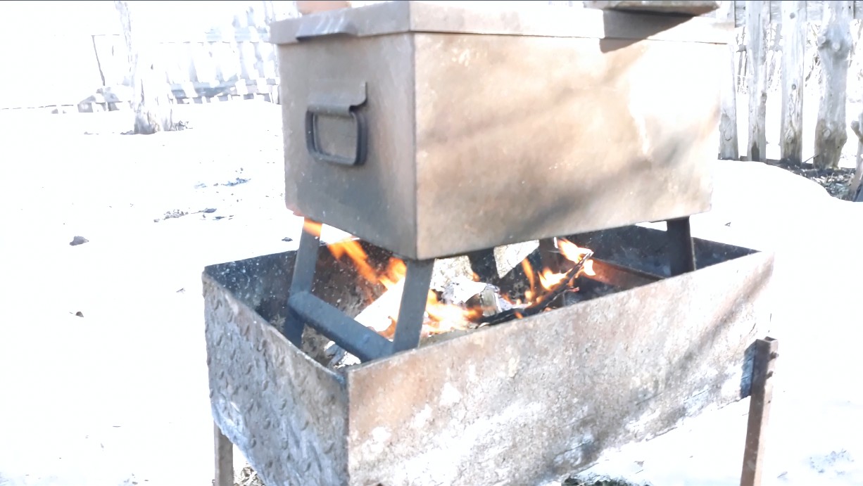 Шаг 5. Берем нашу коптильню и несем ее на огонь. Сначала огонь должен быть более активным, но по мере приготовления рыбы он должен становиться меньше.