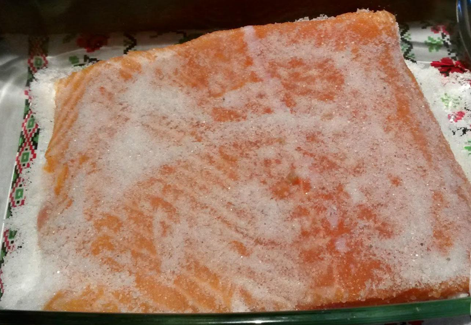 - Замаринованного лосося ополосните под протонной водой, обсушите бумажными салфетками или полотенцами.