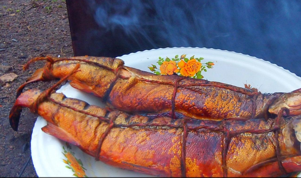 Закрыв крышку, ждем еще 15 минут. Все это время температура не должна превышать 90°C градусов. На вид оценить готовность рыбы не так сложно, но последним штрихом будет легкость отделения плавника от выбранного кусочка. Теперь коптильню рекомендуется снять с костра и оставить остывать. Так как решета были смазаны маслом, то рыбку снять на поднос не составит труда. Полученное блюдо надо употребить за сутки – двое. Длительностью хранения такая рыба не славится.