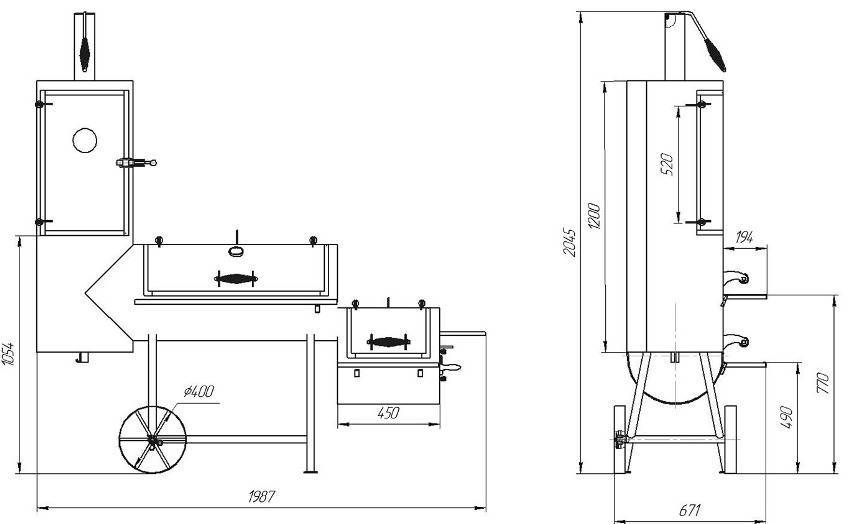 Чертеж с размерами коптильни холодного копчения с дымогенератором