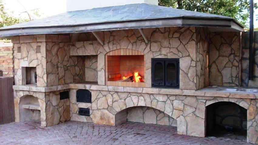Многофункциональная печь готова. Такое сооружение позволяет делать барбекю, шашлыки, жарить плов, установив казан на топку.