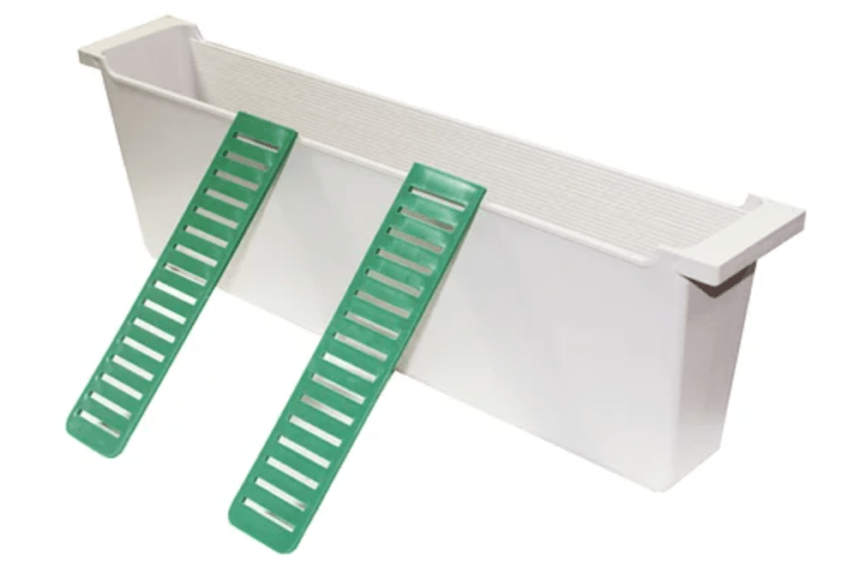 Это самая распространенная внутриульевая модель. Размеры емкости совпадают с рамкой с сотами. Конструкция представляет собой ящичек с открытым верхом, через который внутрь заливается сироп. Внутри устанавливают плавающий мостик, который не дает насекомым тонуть. Такую кормушку нужно ставить вместо рамки сбоку гнезда. При этом ее требуется подвешивать к стене при помощи крючков.